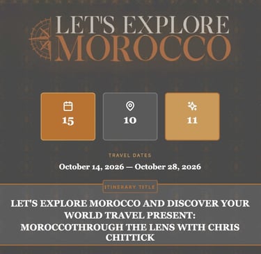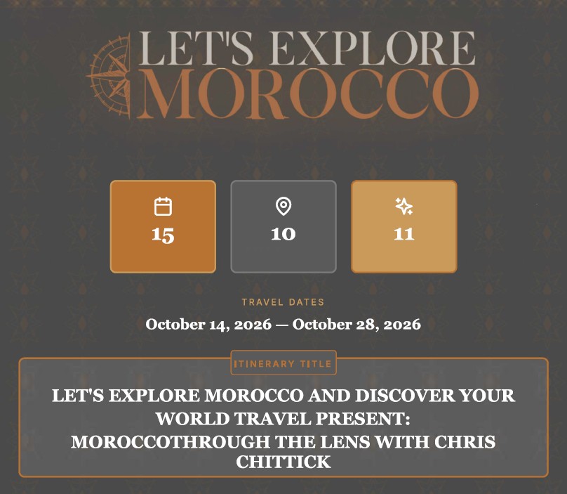 Chris Chittick Morocco tour - this tour is priced in USD$6000.00 per person.